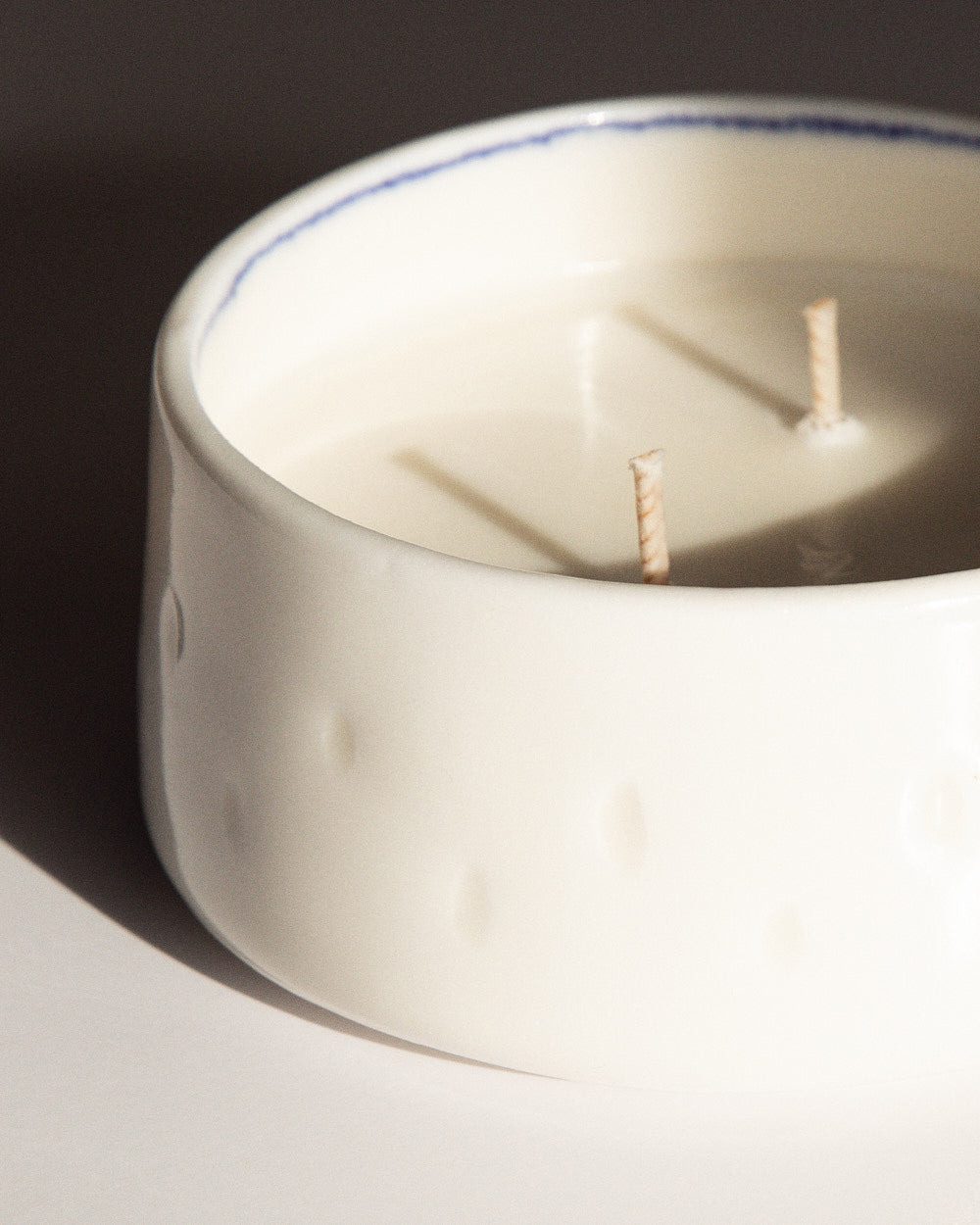 - Each candle is housed in a custom porcelain ceramic bowl – hand-crafted, hand carved, and individually painted, making them slightly unique to one another.