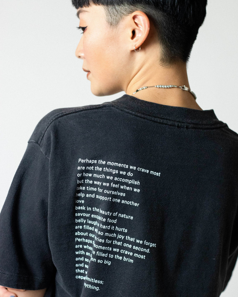 The entirety of Batch 01 is exclusively curated from our friends at Kamuy Vintage, a local vintage shop that sources premium, pre-loved goods. Each piece is then adorned with our own unique OCIN graphics: with The Swirl – a symbol of re:current and the infinite meaning it holds, and a letter dedicated to a life of limitless potential. Then graphics are screen printed by hand by local artist Nicholas Sihala in Vancouver, on the unceded and traditional territories of the Coast Salish peoples.