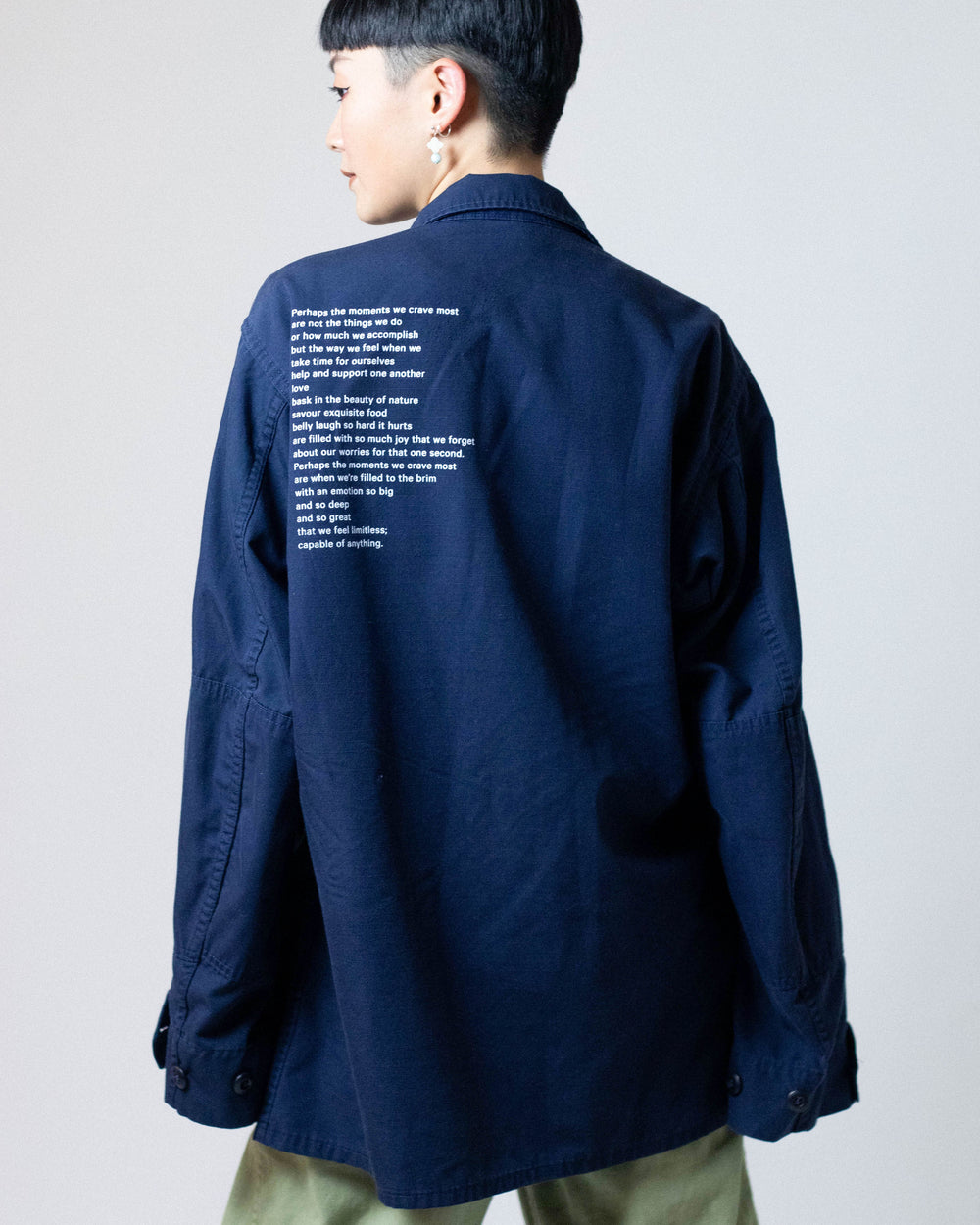 - A 100% cotton Military BDU Jacket in Rare Navy, with two chest pockets.