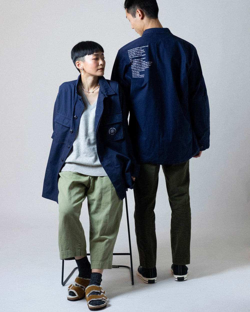 The entirety of Batch 01 is exclusively curated from our friends at Kamuy Vintage, a local vintage shop that sources premium, pre-loved goods. Each piece is then adorned with our own unique OCIN graphics: with The Swirl – a symbol of re:current and the infinite meaning it holds, and a letter dedicated to a life of limitless potential. Then graphics are screen printed by hand by local artist Nicholas Sihala in Vancouver, on the unceded and traditional territories of the Coast Salish peoples.