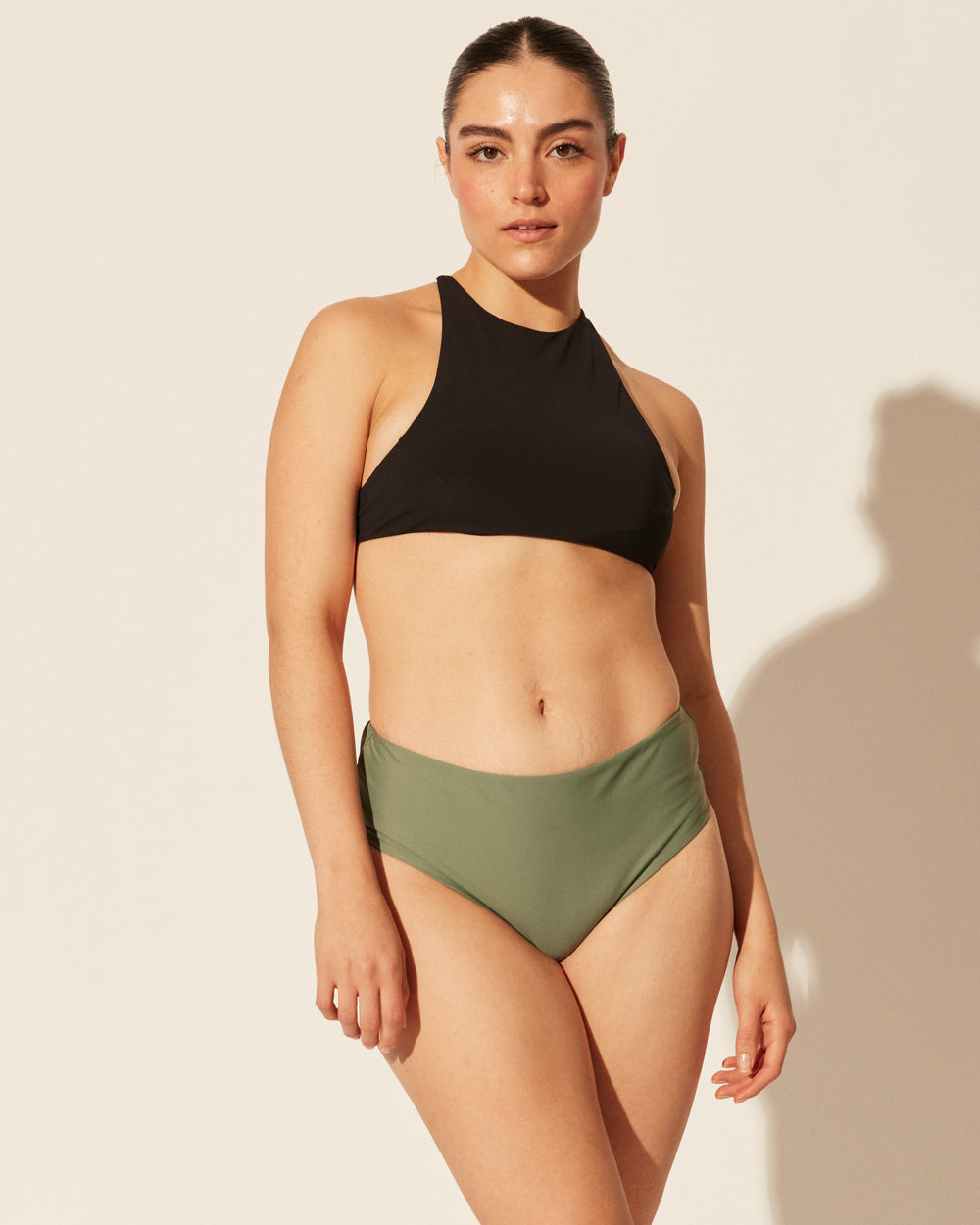 - Sabrina wears Size Mara in Black. Worn with the Hi Waisted Bottom in Black.
